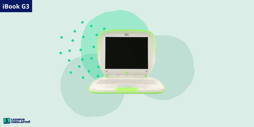 Inspired by the first iMac, the iBook G3 came with a bi-colored polycarbonate shell, 12.1-inch active-matrix display, a PowerPC G3 processor, a 3.2GB HDD, and a carry handle.