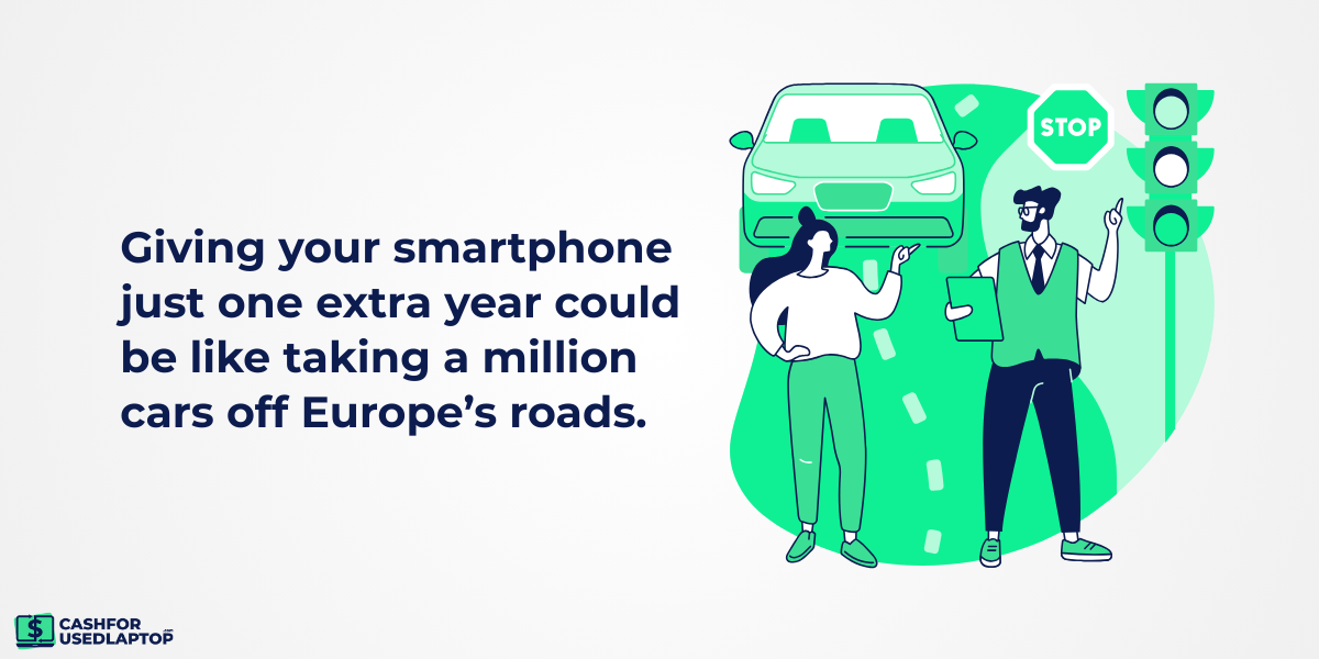 In 2021, a European Environmental Bureau report found that lengthening the life of all European smartphones by one year would save as much CO₂ as taking one million cars off the road each year.